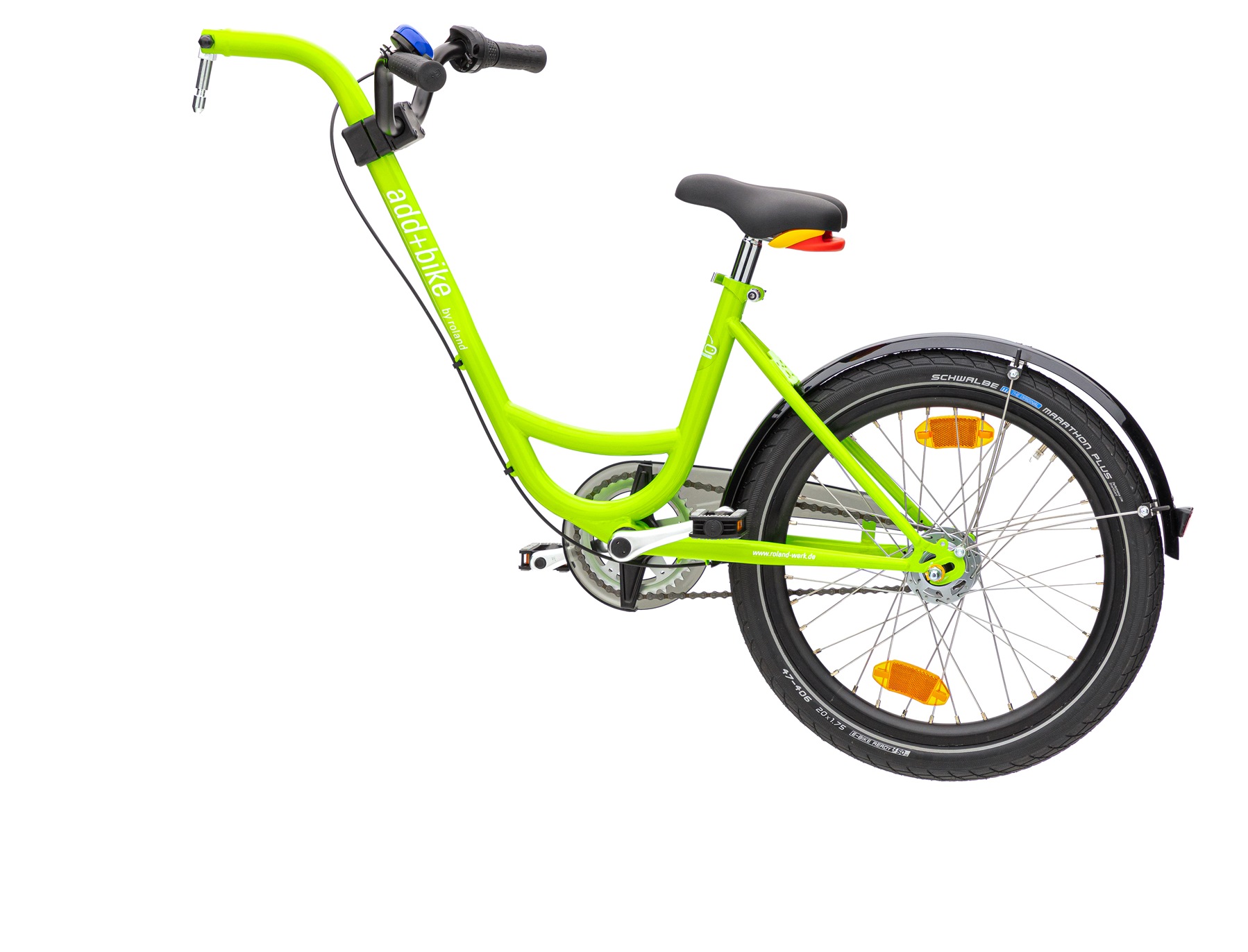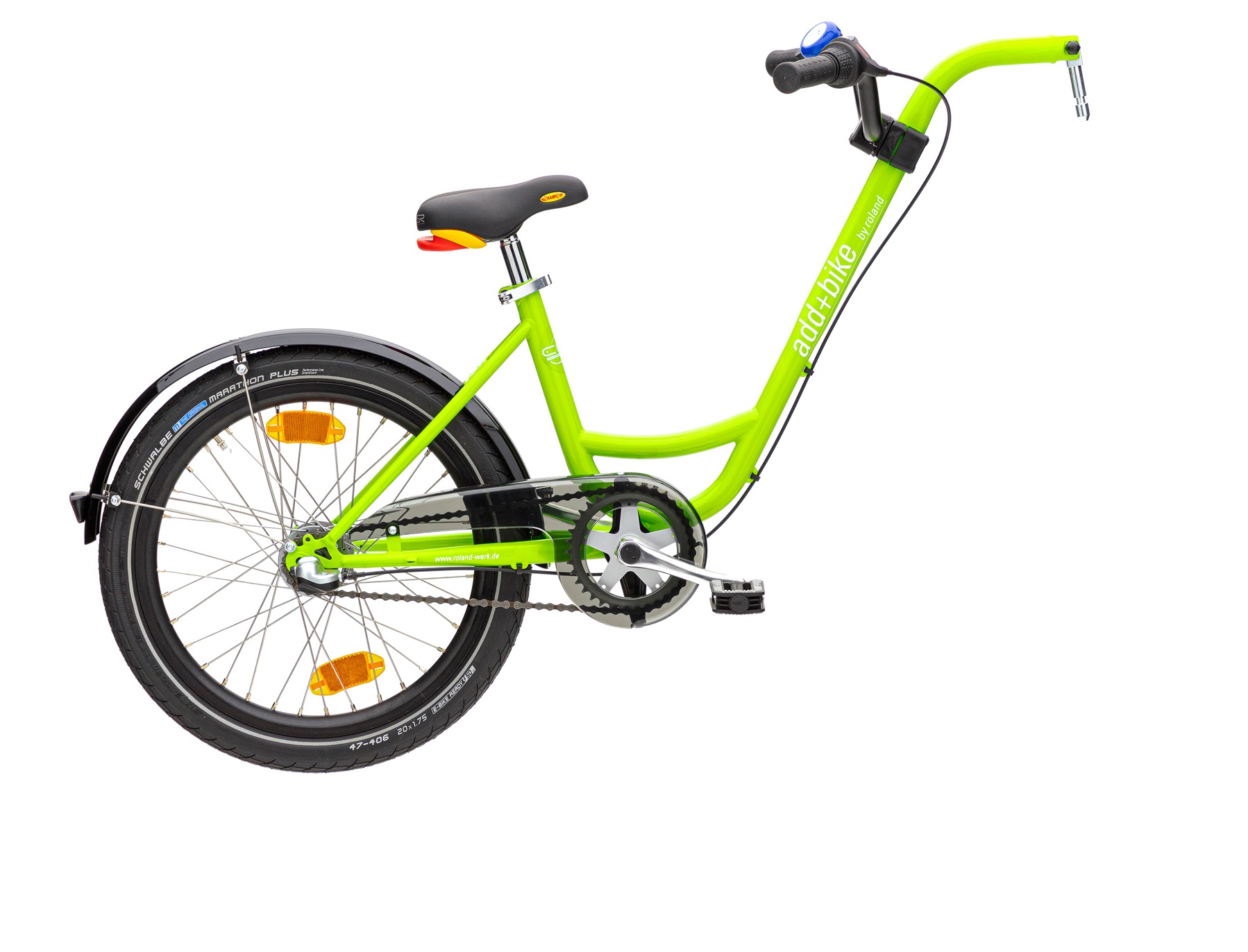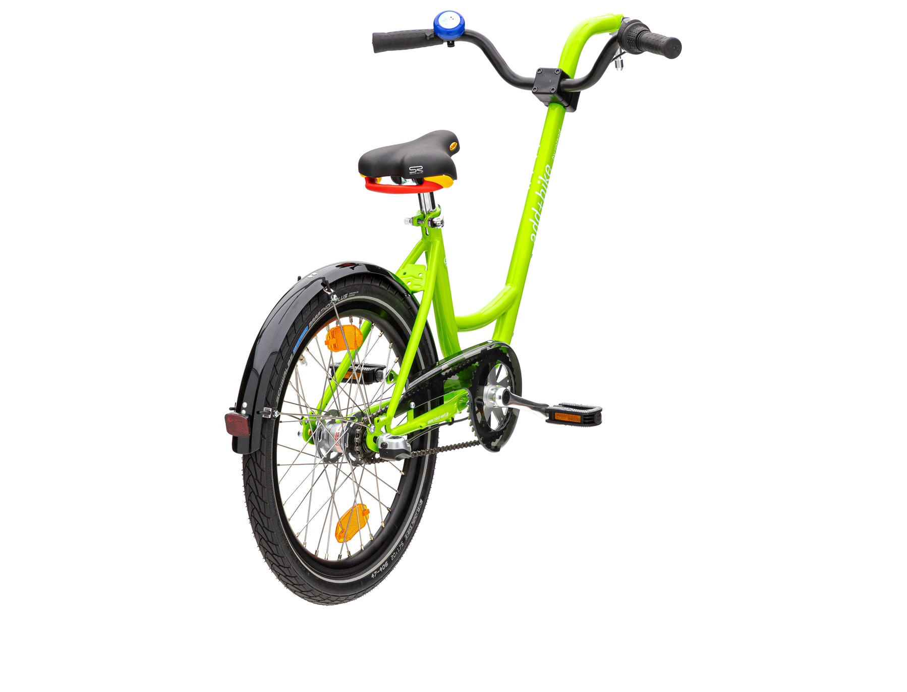 Die frische grüne Farbgebung macht das add+Bike 3-Gang zum echten Hingucker und passt perfekt in den urbanen Alltag oder auf Ausflüge ins Grüne. Eltern profitieren von einem unkomplizierten Handling, während Kinder die Freude am Radfahren entdecken und Schritt für Schritt ihre eigenen Fähigkeiten erweitern.