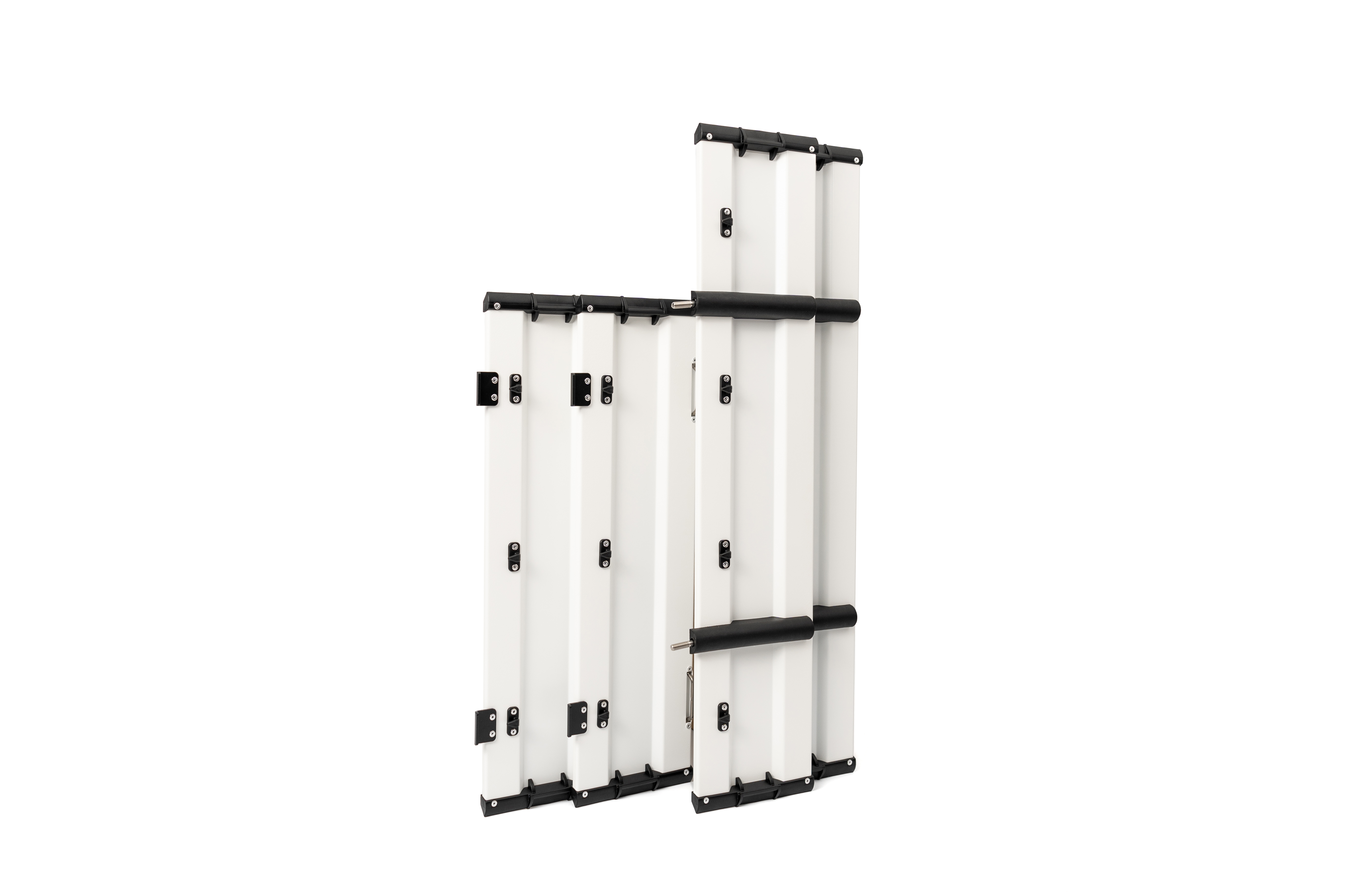 Die weißen, glatt-glänzend pulverbeschichteten Roland Carrie M.e Bordwände sind ideal um die Nutzungsmöglichkeiten des Fahrradanhängers Carrie M.e zu erweitern und ihn als modulare Transportbox zu nutzen. Zur Befestigung einer Plane oder der Transporte, werden die Bordwände mit befestigten Spannhäkchen geliefert. Durch die mitgelieferten Scharniere werden die die Wände einfach und schnell montiert.